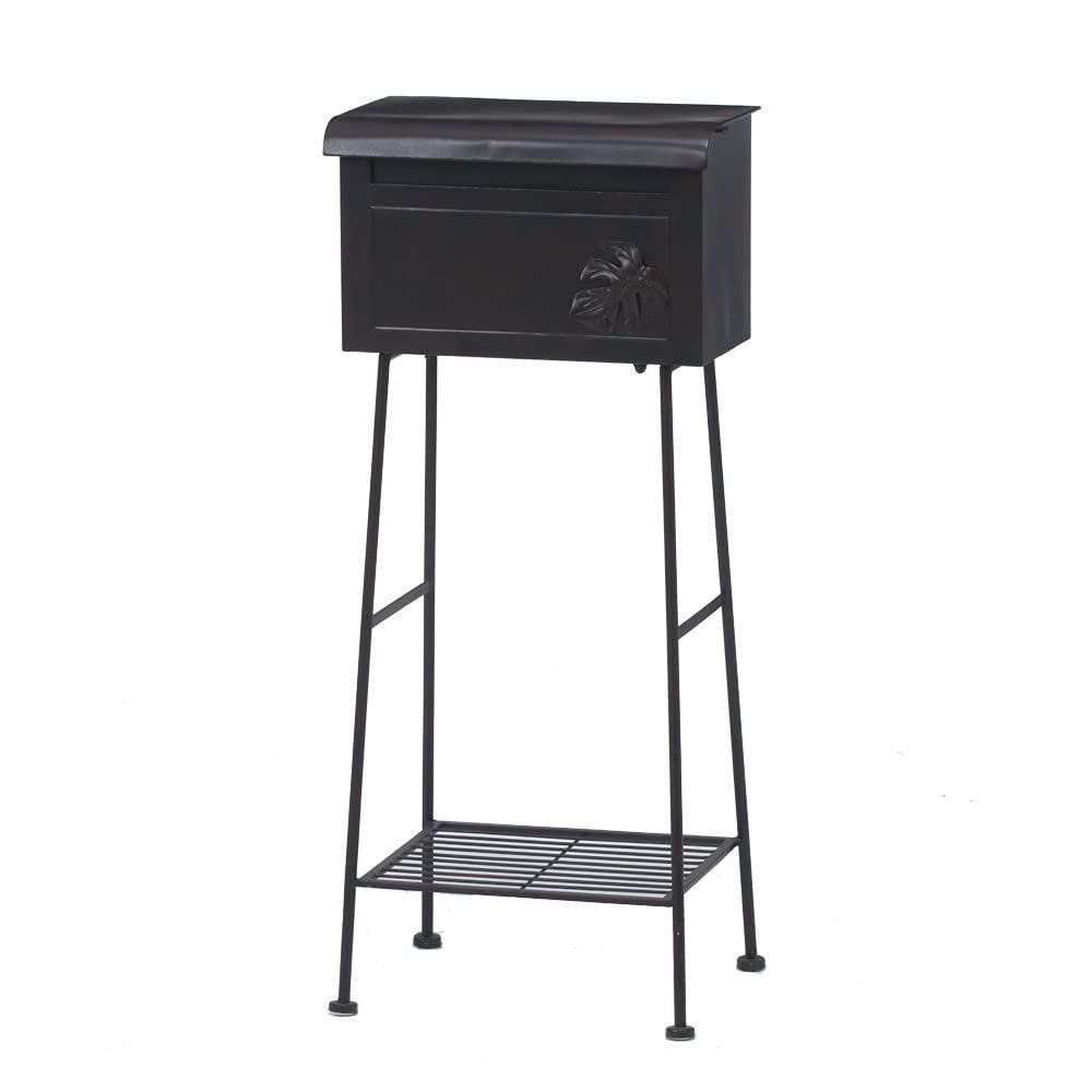 数量 不二貿易 郵便ポスト 幅42.5×奥行35×高さ99㎝ ブラウン メールボックス 郵便受け キーホール付 モンステラ 35069