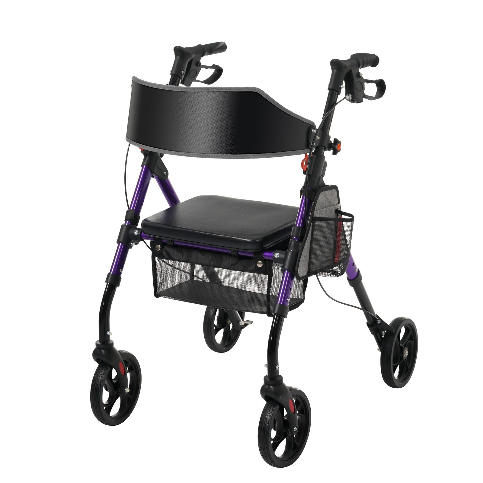 歩行器 歩行車 シルバーカー 室外用 6段階高さ調整 折りたたみ 座面付き 四輪 キャスター付き おしゃれ 座れる 散歩 シニア 歩行補助 買い物 ショッピングカー 大容量 老人車 手押し車 介護 高齢者 パープル