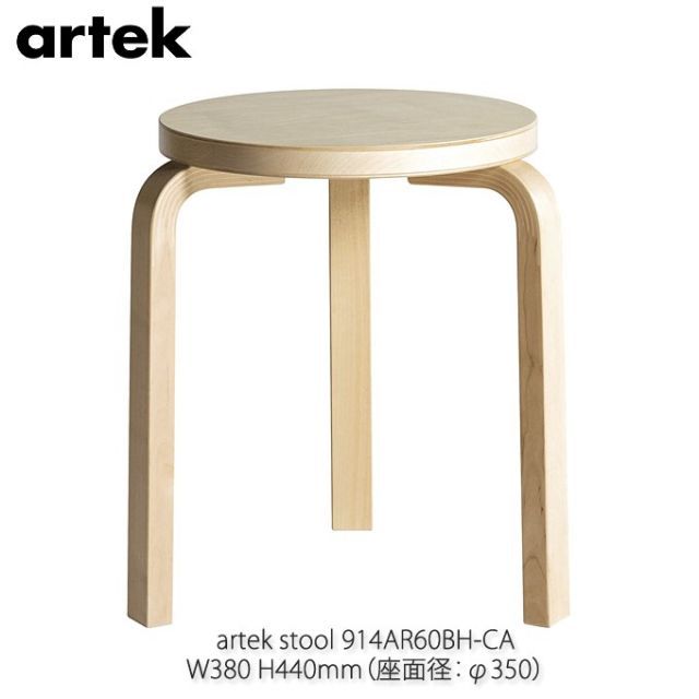 artek アルテック 不朽のスツール 60 Stool バーチ アアルト 3本脚 914AR60BH-CA