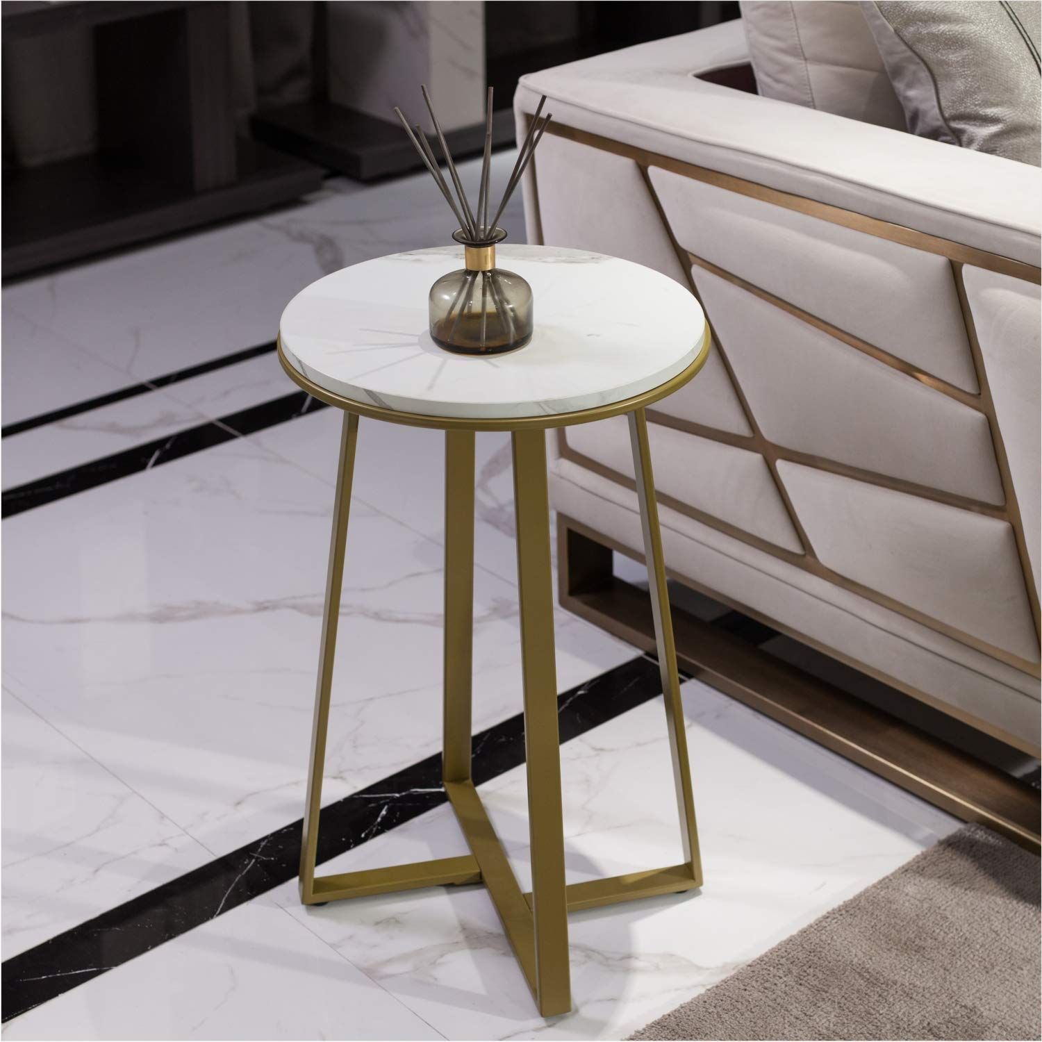 新着商品 MONCOT サイドテーブル 丸型 ソファーサイド ベッドサイド テーブル 物置テーブル カフェテーブル 小さい 木製天板 金属フレーム 簡単組立 おしゃれ 大理石模様 ET9522-WH