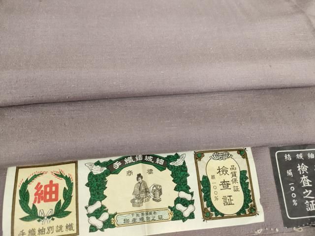 平和屋着物▽手織結城紬 単衣 梅鼠色 証紙付き 正絹 ♥ DAAV5775az