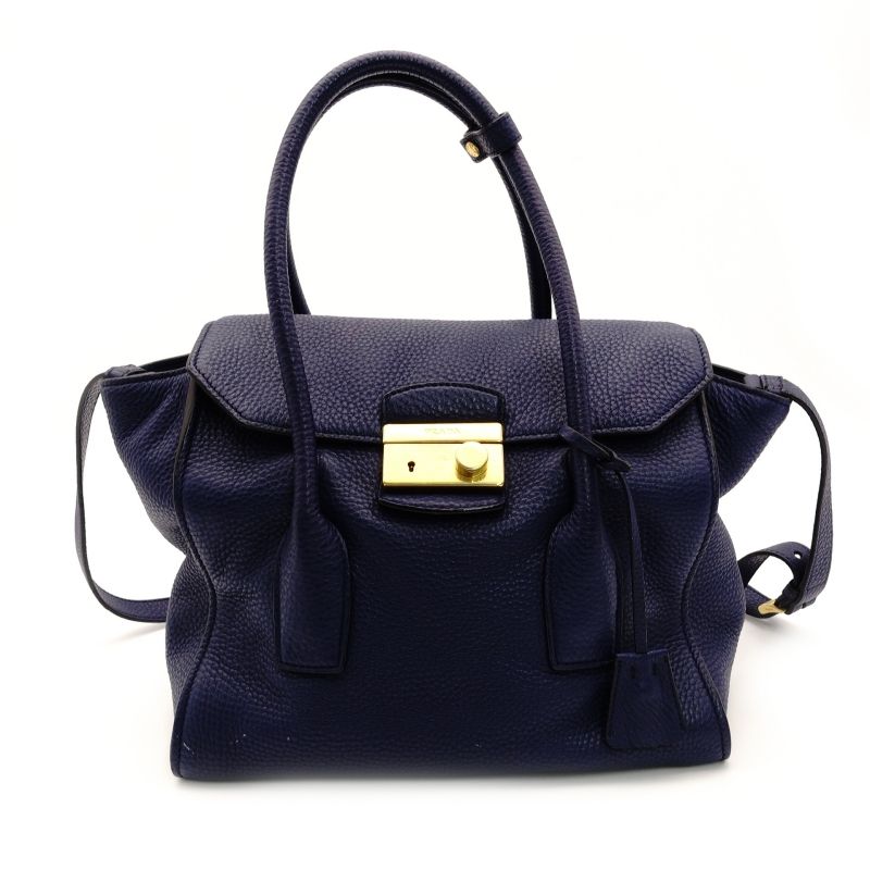 プラダ PRADA ハンドバッグ レザー ブルー 2way クロスボディ 青 ゴールド金具 7-7-1089