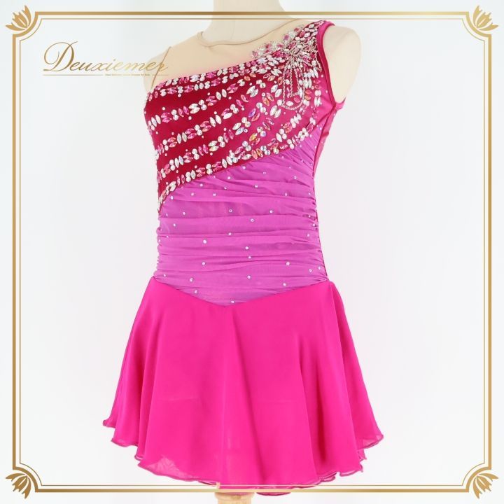 フィギュアスケート 衣装 ウェア コスチューム レオタード ベロア ビーズ ワンピース ダンス ピンク系 フィギュアスケート衣装 ダンス衣装 衣装コスチューム スポーツウェア 発表会コスチューム おしゃれデザイン レディース スケートウェア ピンク ビーズ装飾
