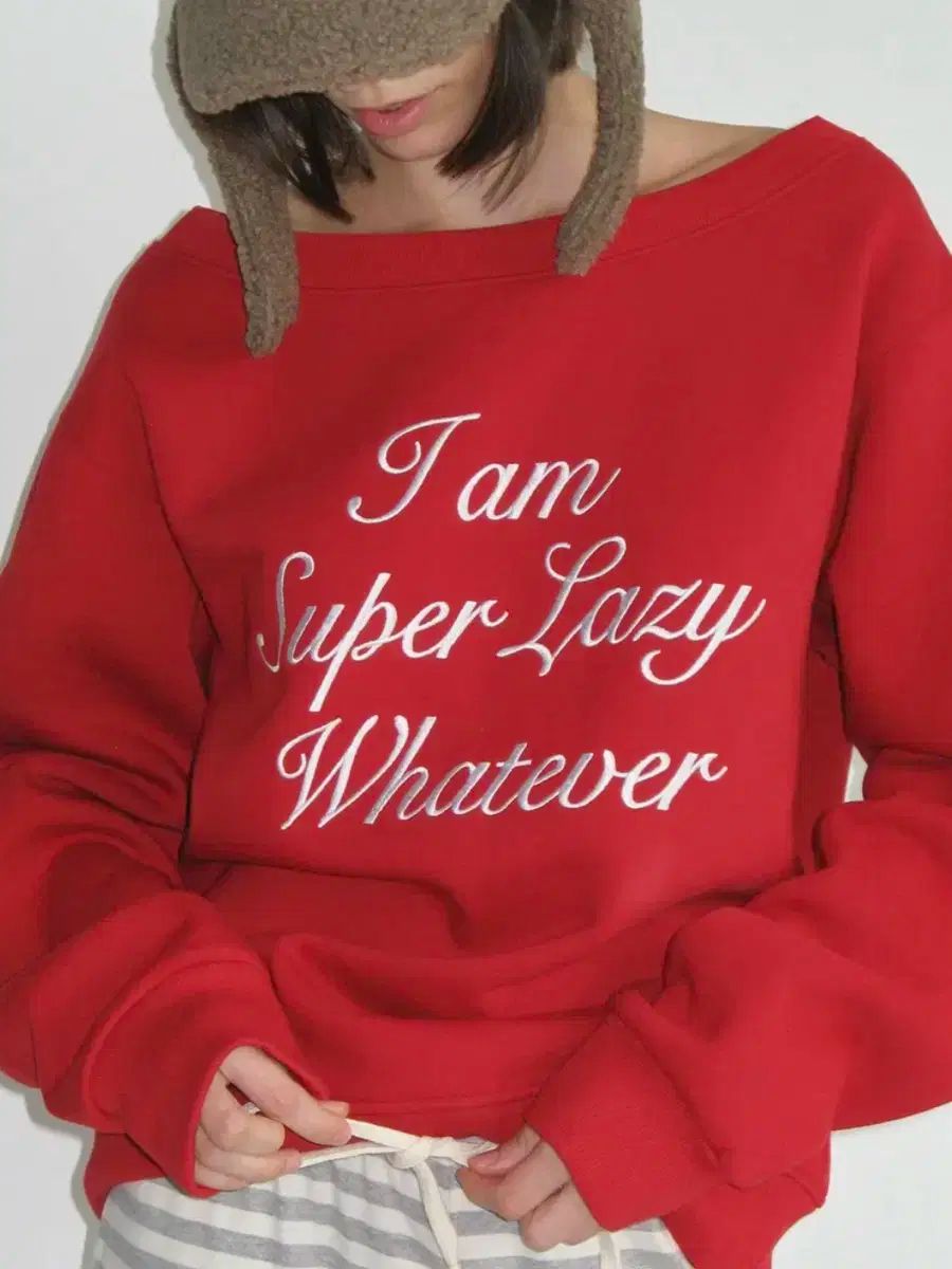 レイ ジジ スーパー レイジ オフショルダー 裏起毛 トレーナー 赤