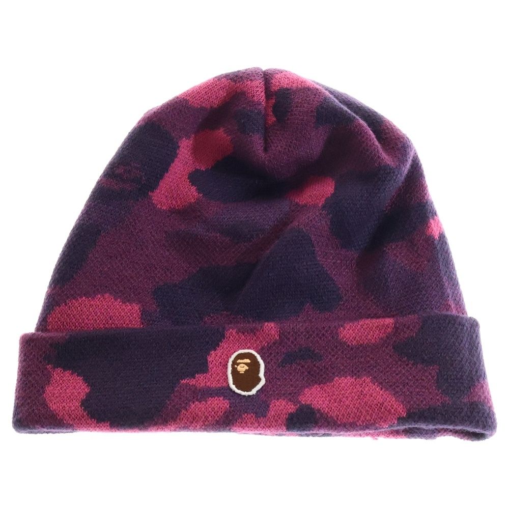 A BATHING APE アベイシングエイプ COLOR CAMO KINT CAP カモ総柄 ロゴ刺繍ニット帽 ビーニー パープル 001CPH7010081