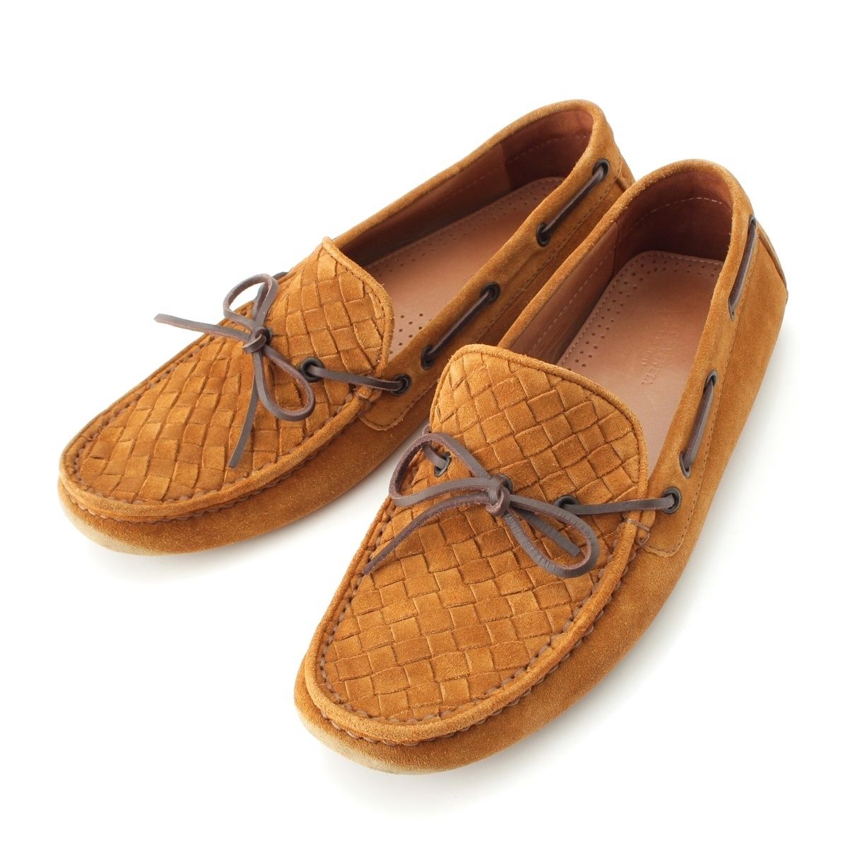 ボッテガヴェネタ イントレチャート レザー スエード ドライビング スリッポン フラット シューズ ブラウン 39
