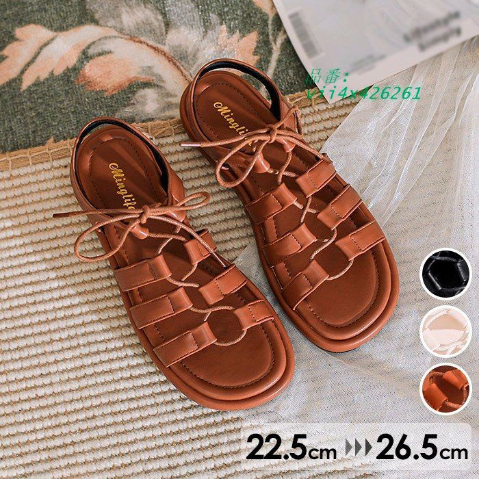 ストラップサンダル 編み上げ サンダル レディース かかとあり 夏 ブラウン 大きいサイズ 大人 ベージュ シンプル ブラック 女性 ベルト vii4x426261