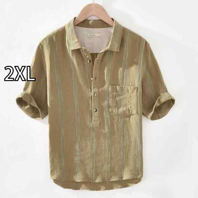 2XL メンズ ファッション 服 オシャレ シンプル 大人 かっこいい 大きいサイズ ストリート 紳士服 リネン シャツ 半袖 夏 ストライプ カジュアル