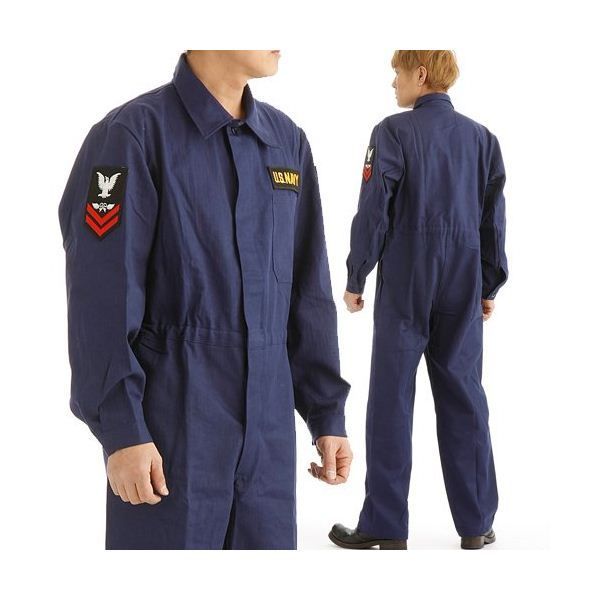 アメリカ海軍 米軍 紋章入り ヘリンボーンワーカーカバーオール 522904 ネイビー M