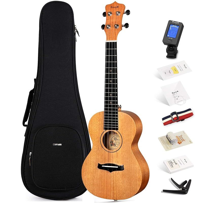 Enya コンサートウクレレEUC-25D マホガニー単板ウクレレ初心者セット23インチウクレレ収納バッグ チューナー ストラップ スペア弦等付属品一式