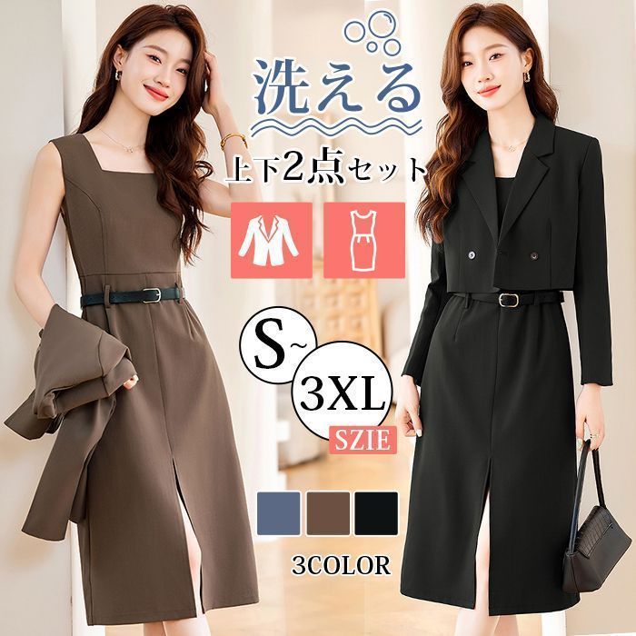 ワンピーススーツ レディース スーツ セレモニースーツ ママスーツ 上下2点セット 通勤 ビジネス オフィス 洗える ロング丈 ジャケット ワンピース 入学式 卒業式 入園式 卒園式 母 着痩せ プレゼント ギフト mcnx03677