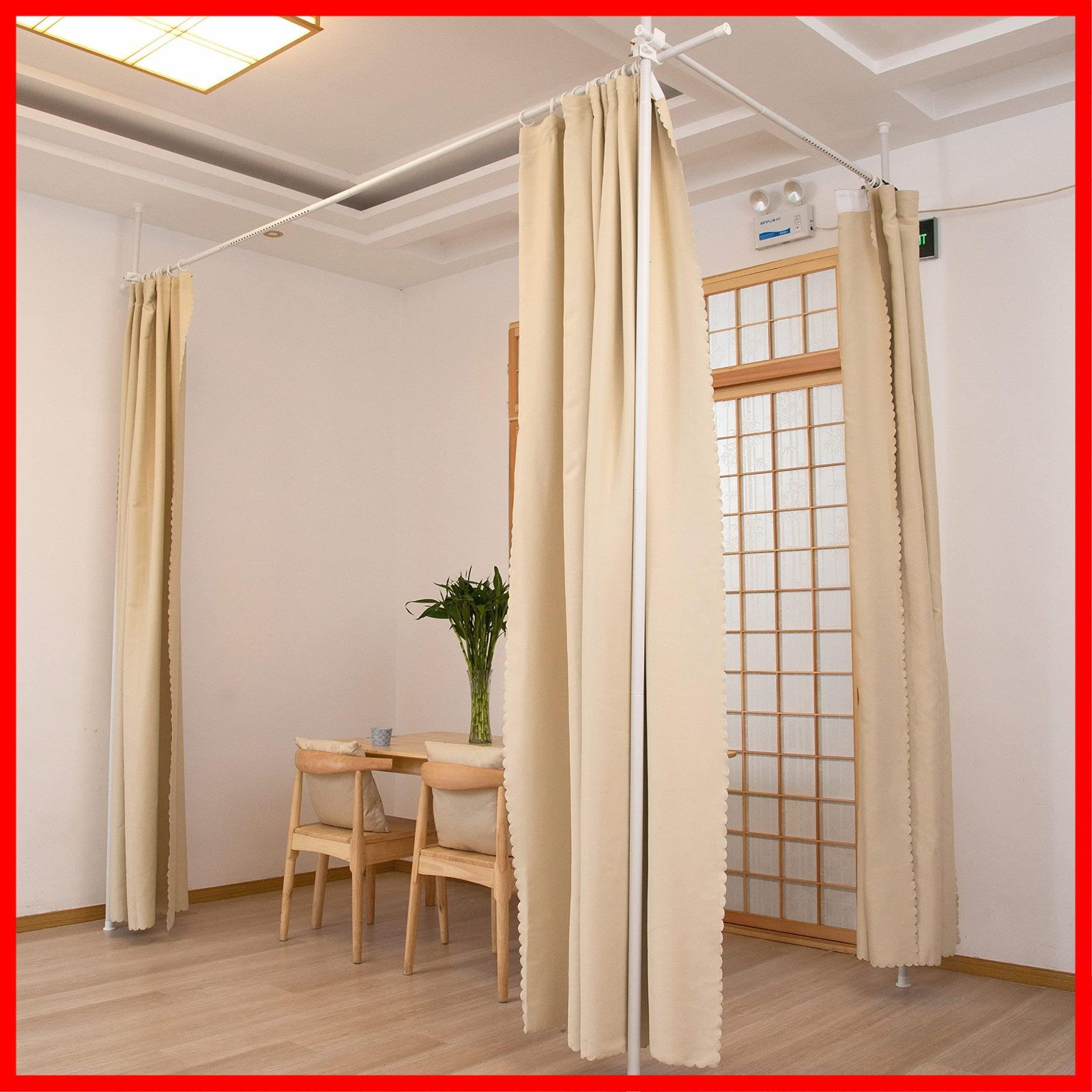 数量 つっぱり式 IMIEE 間仕切り カーテンポール 部屋仕切り 間仕切りつっぱり棒 L字 コーナー 直線最大620cm パーテーション カーテンレール カーテンリング付 幅-高さ-奥行 110cm~310cm マッドホワイト 3ポール