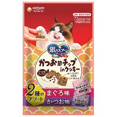 同梱不可 24個セット ユニ チャーム 銀のスプーンおやつかつお節チップinクッキー2種のアソートまぐろ&かつお味 72g