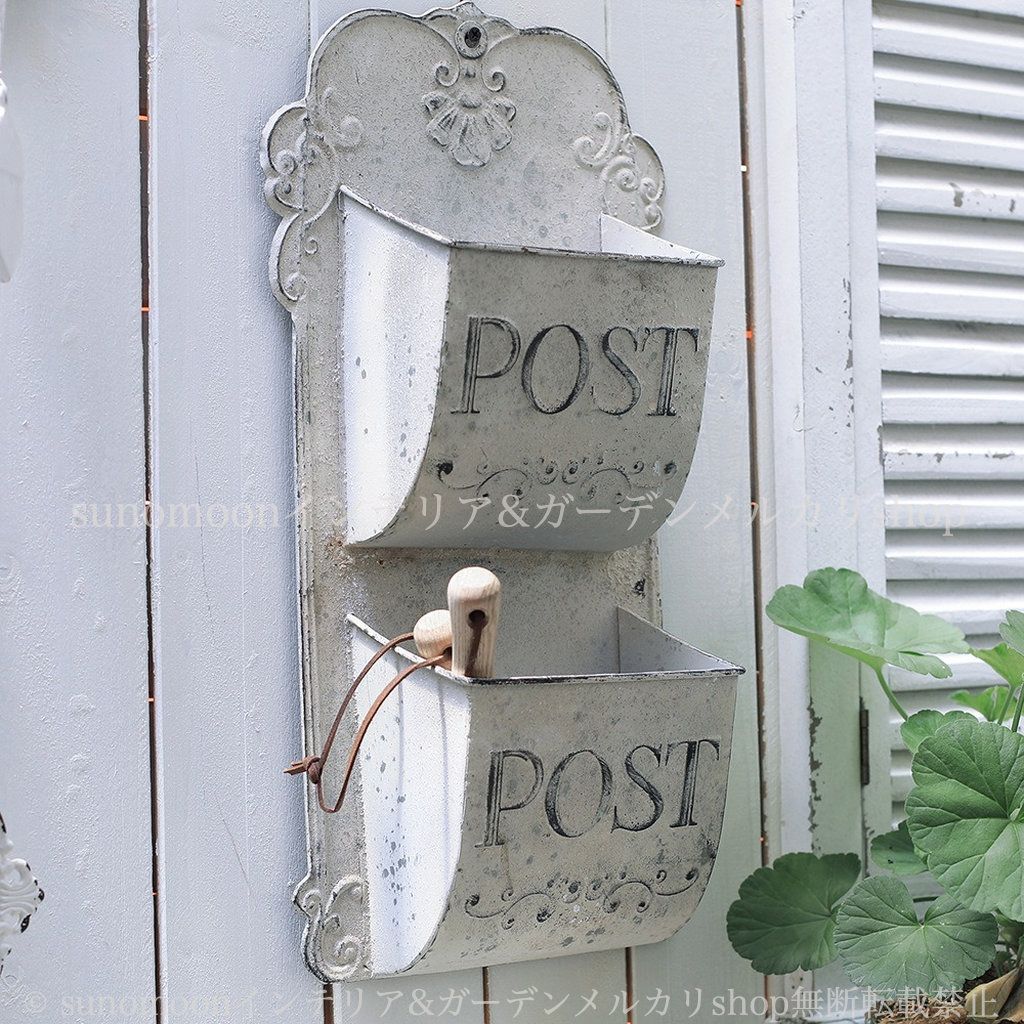 庭の装飾 お洒落 おしゃれ 8-14 白 小物収納 シャビーシック ガーデニング 雑貨 ガーデンインテリア インテリア ヴィンテージ調 郵便受け ポスト ホワイト 壁掛け ガーデン雑貨 鉄 シャビー加工 ガーデン