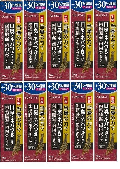 30%増量パッケージ品10箱サンスター SUNSTAR 薬用塩ハミガキ 生薬当帰の力 スパイシーミント 歯みがき粉110g 通常パッケージ85gより25g増量 ハミガキ粉 歯周病 歯槽膿漏 歯肉炎 ハグキのハレ 出血 口臭予防 医薬部外品