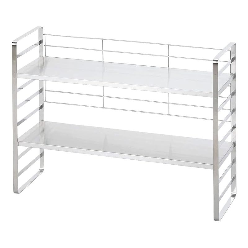 下村企販 高さ調節できる キッチンラック 幅60cm 日本製 収納ラック 棚2段 落下防止のバックネット付き 調味料 鍋 ボトル キッチン収納 組み立て簡単 頑丈 ステンレス 燕三条 1