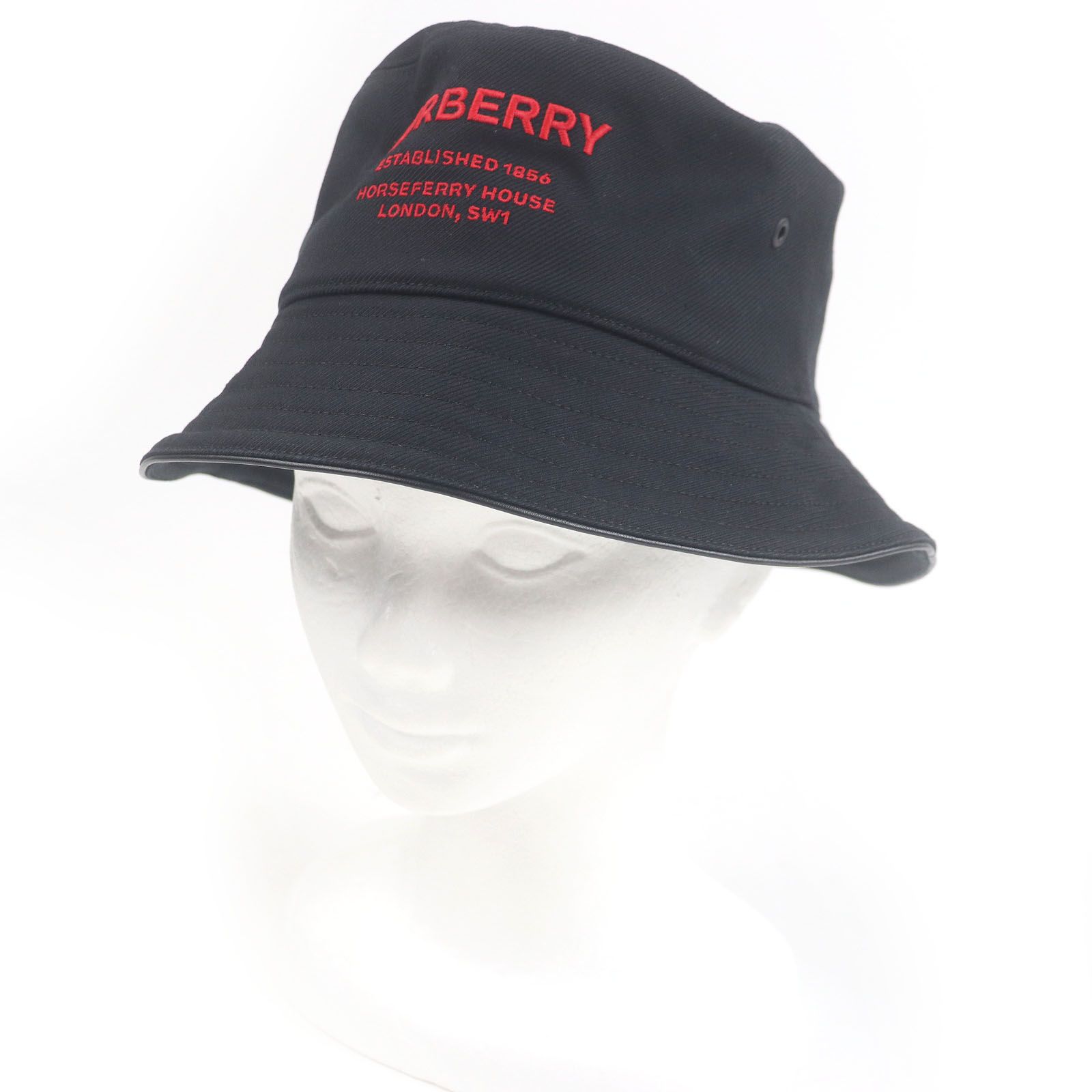 ♥品□BURBERRY バーバリー 8053474 ラムレザーパイピング ホースフェリーロゴ 刺繍 エンブロイダリー バケットハット 帽子 ブラック M 正規品 イタリア製 メンズ