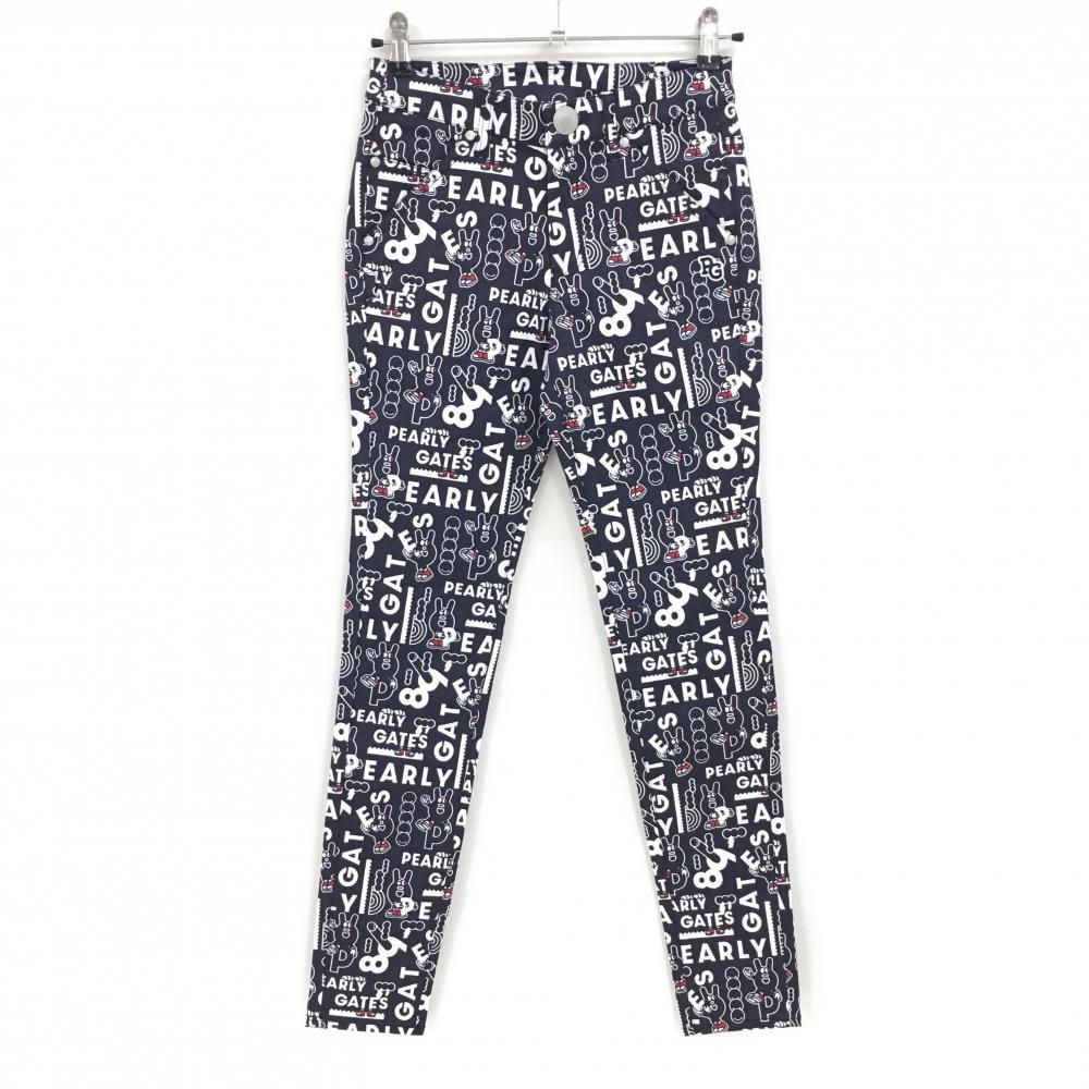 パーリーゲイツ パンツ ネイビー×白 ロゴ総柄 どうしちゃったPG レディース 0 S ゴルフウェア PEARLY GATES