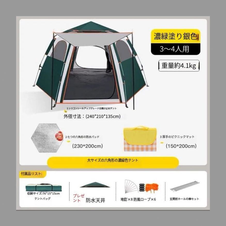 テント屋外折りたたみポータブルキャンプ装備用品自働速開防雨キャンプ公園六角日焼け止め