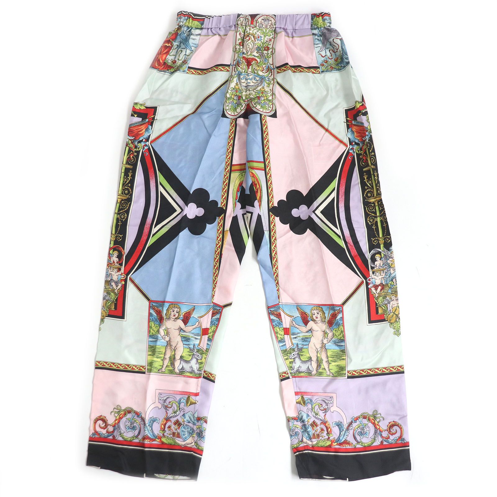 VERSACE ヴェルサーチ 22SS シルク 天使 総柄 パジャマパンツ イージーパンツ マルチカラー 44 イタリア製 正規品 メンズ