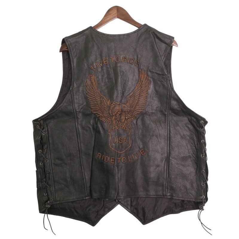 Euro SBI Stars 本革 ライダース リアルレザーベスト 古着 メンズUS-5XLサイズ ブラック系 jc-0240