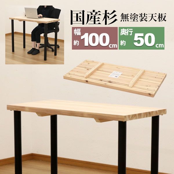テーブル 天板のみ DIY テーブル天板 日本製 無塗装 無垢材 国産杉 天然木 幅100cm 奥行50cm 厚み3.5cm 補強桟含む厚み7cm ナチュラル シンプル テーブルリメイク リフォーム カウンターテーブル 立ちテーブル スタンディングテーブル テ