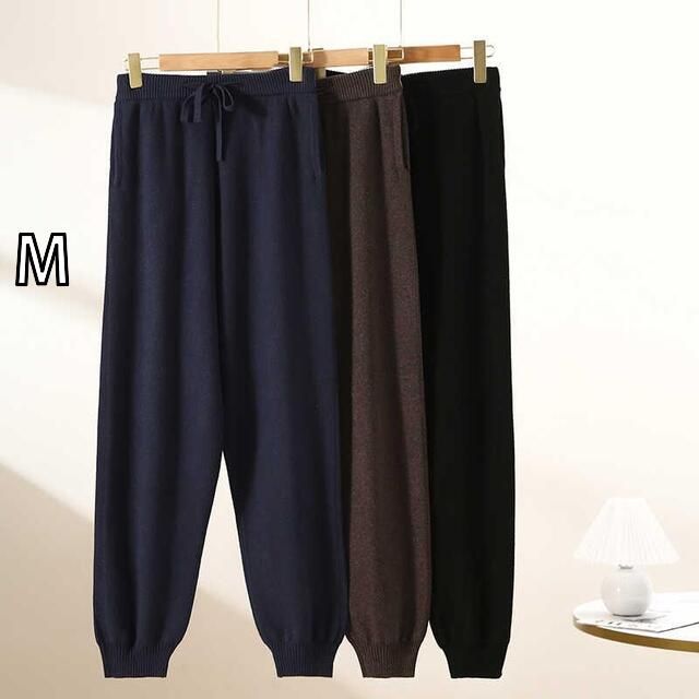 M 春 コーデ レディース ファッション オシャレ カワイイ シンプル きれいめ ナチュラル 上品カジュアル 婦人服 メンズ ウール ニット パンツ ハイウエスト ポケット スウェットパンツ ゆったり スリム