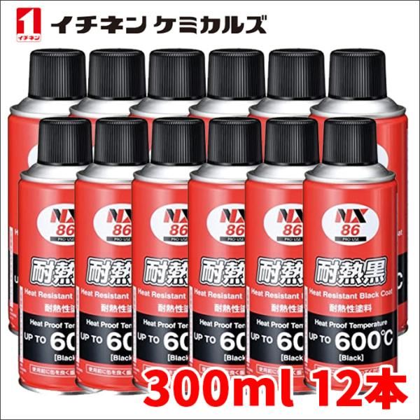 マフラー用耐熱塗料 耐熱ブラック 耐熱黒 300ml 耐熱性600℃ 煙突 ボイラー配管 塩害から守る イチネンケミカルズ NX86 12本