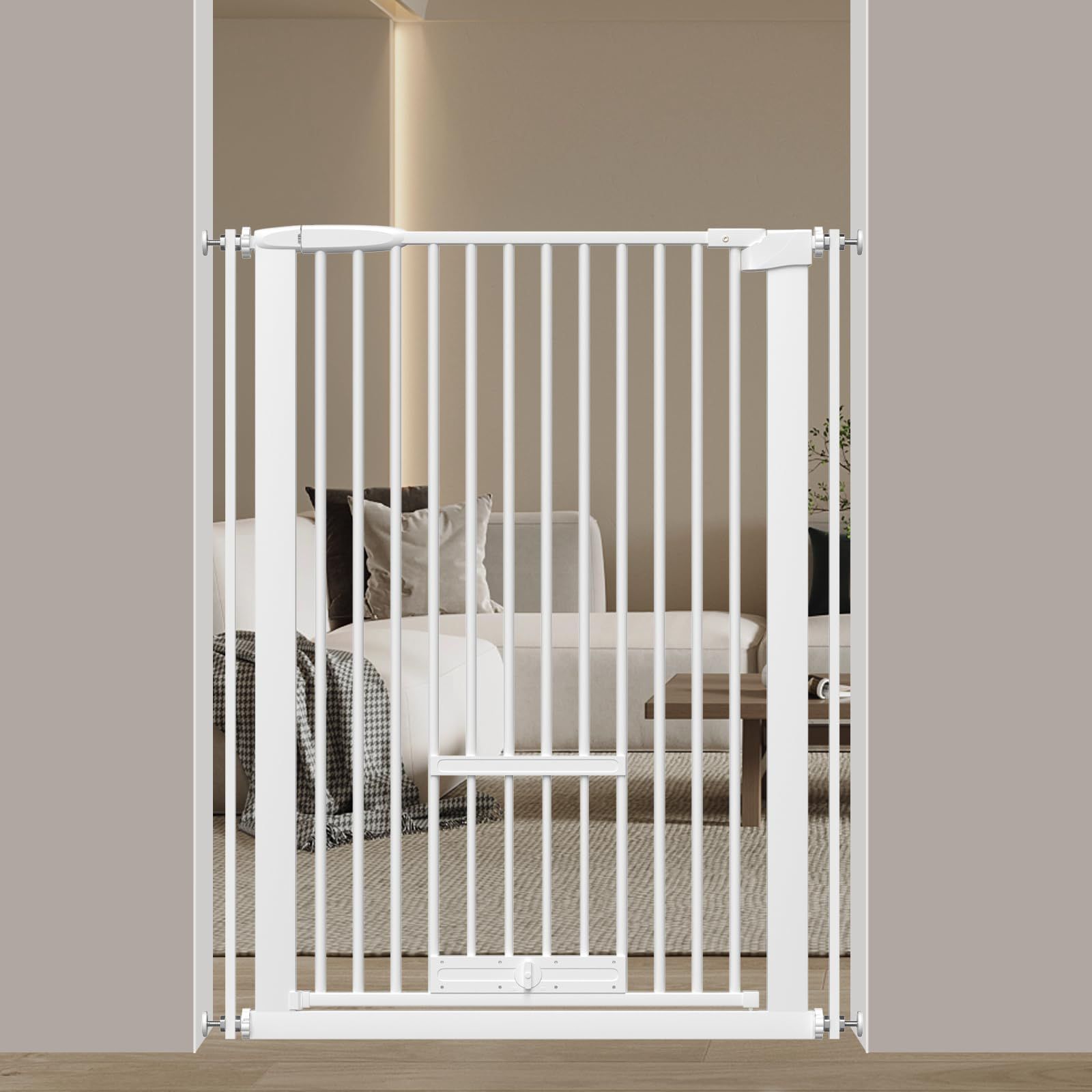 ペットゲート ペットゲート ドア付き ㎝ 猫すり抜け防止 間隔3 飛び越え防止ゲート 高さ103㎝ 猫ドア付きゲート ベビーゲート 過密フレーム付き ホワイト Seogva 62-71cm