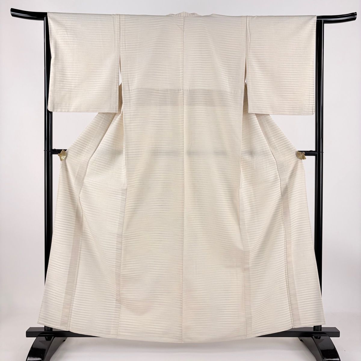 お召 身丈160cm 裄丈63cm S 薄物 本塩沢 証紙 縞 ベージュ 正絹
