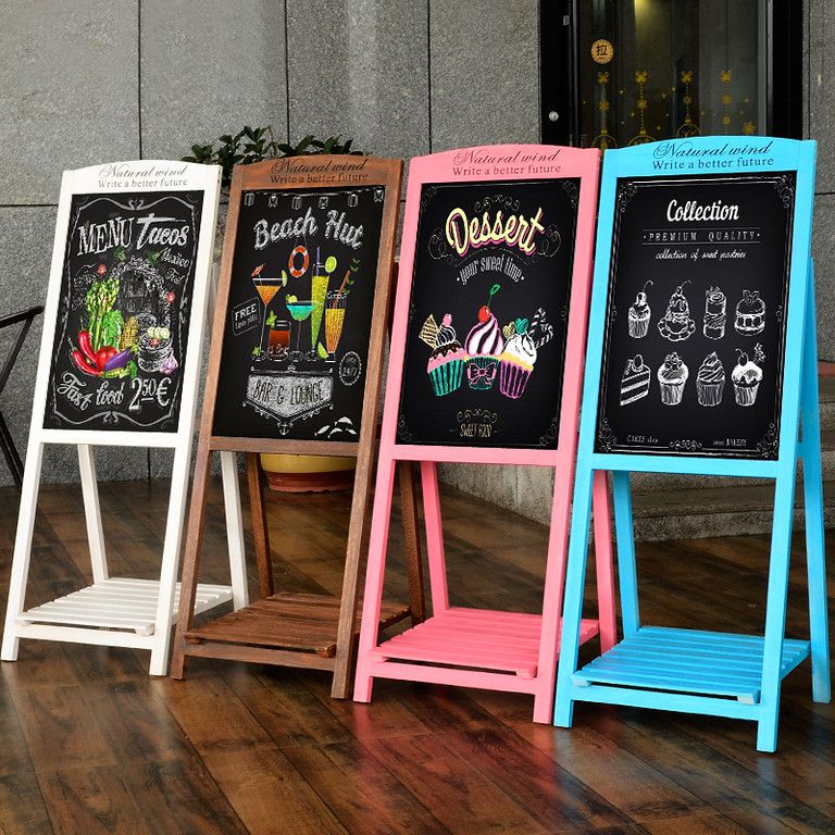 木製レトロ調ブラックボード 縦型サインボード ピンク