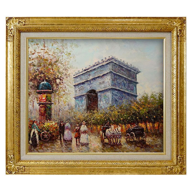 油彩画 Beneath the Arch 凱旋門の下で ビリー ガストン 額入り 油絵 F10号 風景画 額装画 現代フランスの画家が描く19世紀の街 真筆 肉筆画 手描き YE495