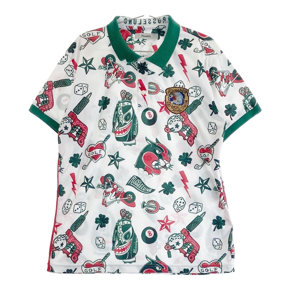 サイズ 6 RUSSELUNO ラッセルノ 半袖ポロシャツ ルチャ ワッペン 総柄 ホワイト系 240101513667 ゴルフウェア メンズ ストスト