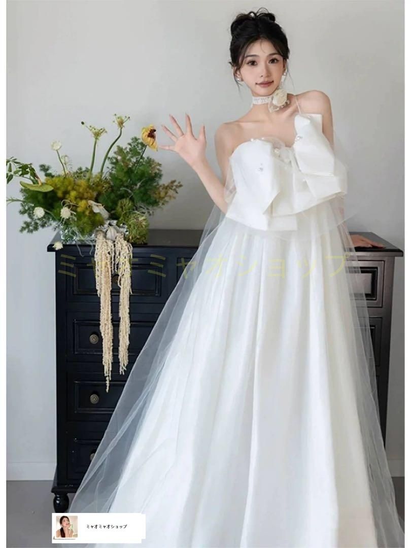 大きなリボン付ウェディングドレス?パールが可愛い結婚式用マタニティOK