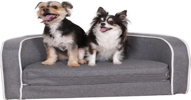 不二貿易 ペットベッド ペットソファ 幅77×奥行43~75.5×高さ30cm グレー フロアソファ ファブリック 折り畳み 小型犬 猫 45226