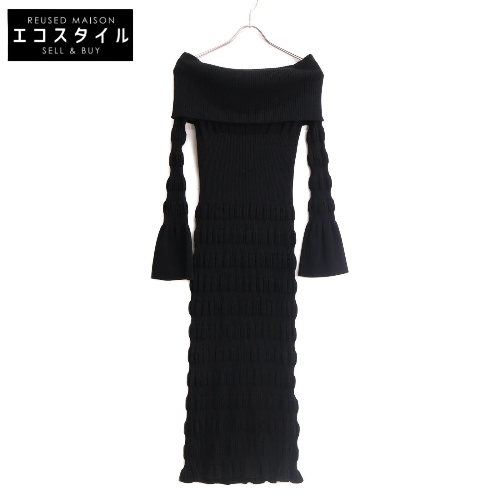 FETICO フェティコ FTC244-0703 24AW ブラック STRIPE KNIT OFF SHOULDER DRESS ストライプニットオフショルダードレス 1