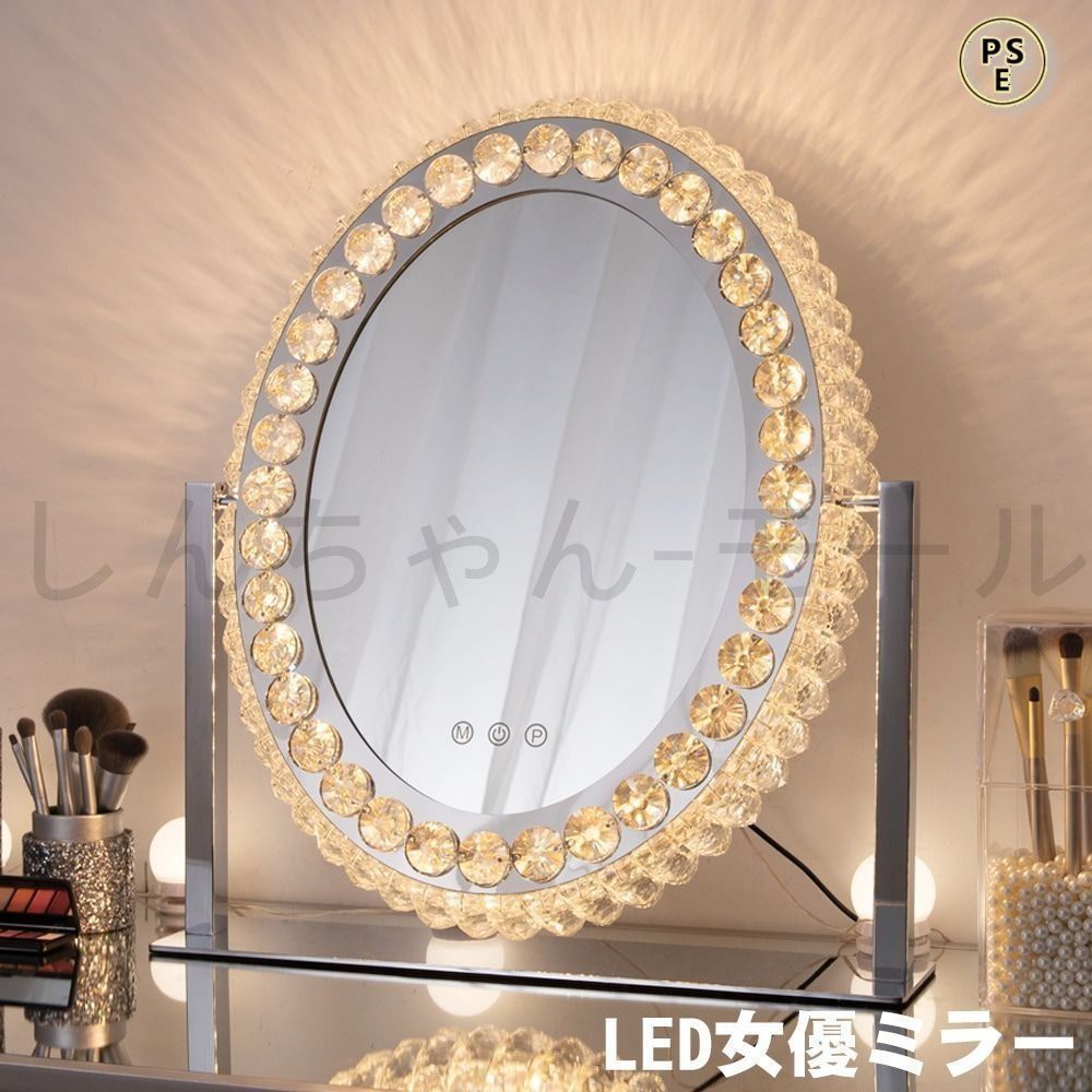 女優ミラー ライト付き クリスタル 52*46cm おしゃれ 三色調光無段階調光 女優ミラー 卓上 タッチスイッチ 記憶機能 ハリウッドミラー 大型