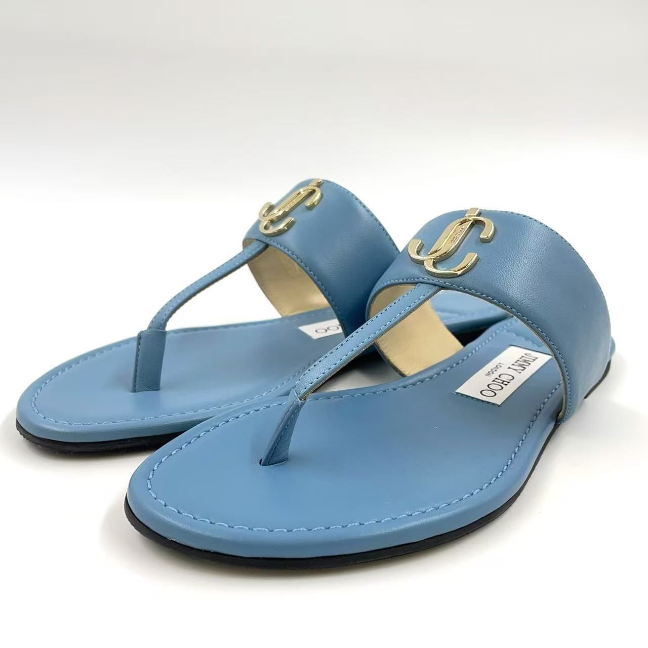 JIMMY CHOO JC レザー ライトブルー サンダル ゴールド