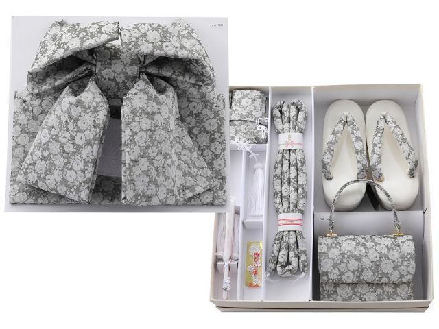 七五三 女の子用 結び帯 箱せこセット 草履 21cm 化粧箱無し モスグレー se-241-705C
