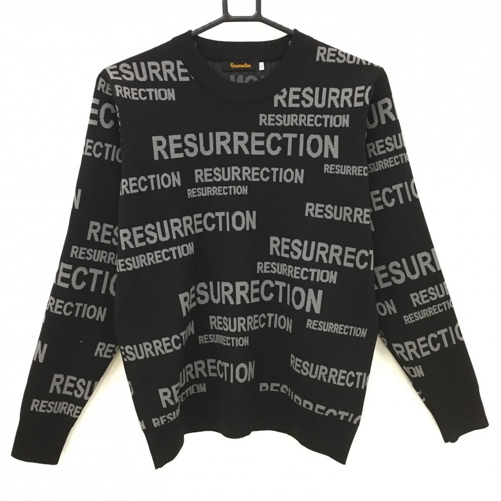レザレクション セーター 黒×グレー ロゴ総柄 ニット レディース L ゴルフウェア Resurrection