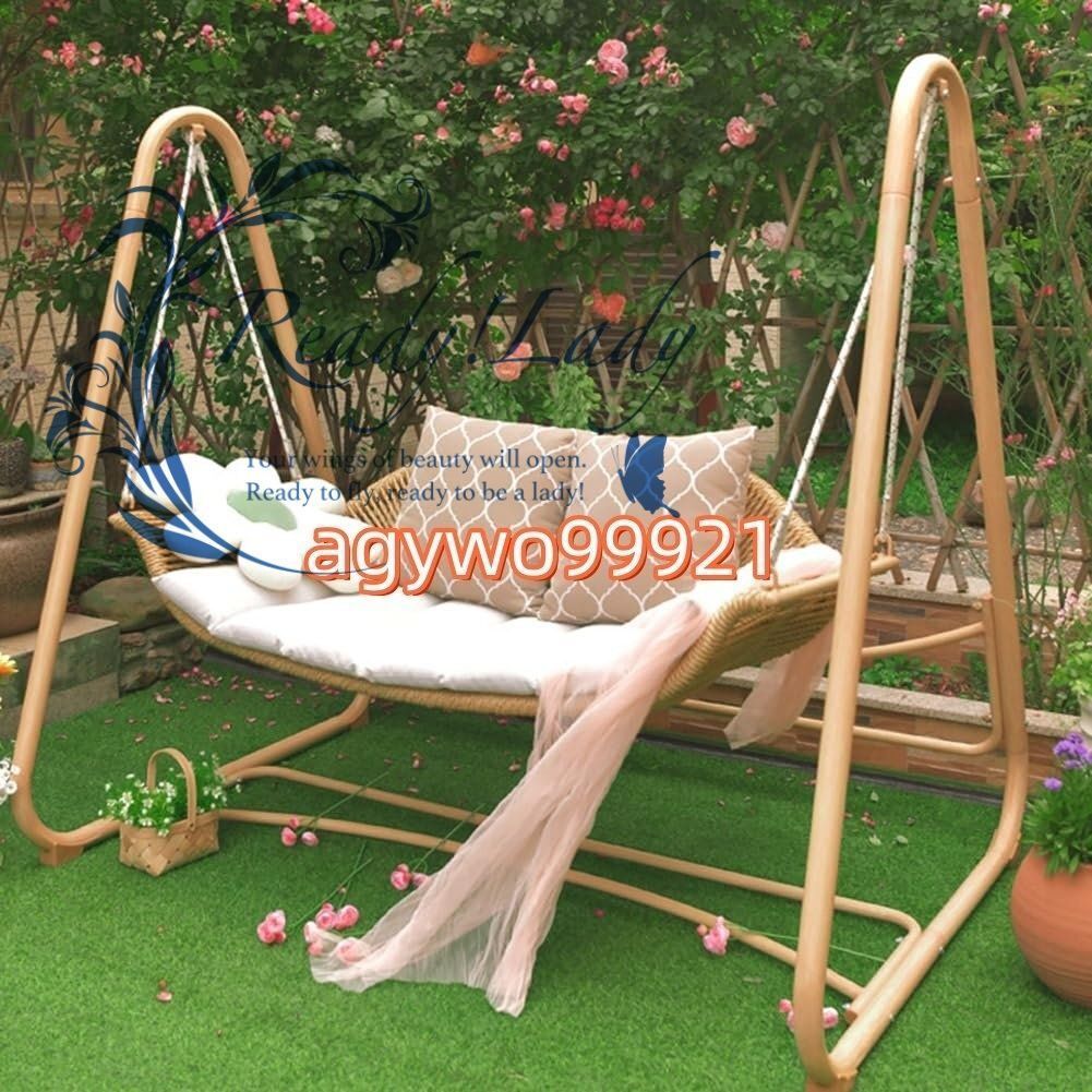 ブランコ 屋外 2人乗り 手編み籐椅子 クッション座面 自立式ブランコ ベンチスイング 屋外遊具 屋根無し 174×120×158.5cm