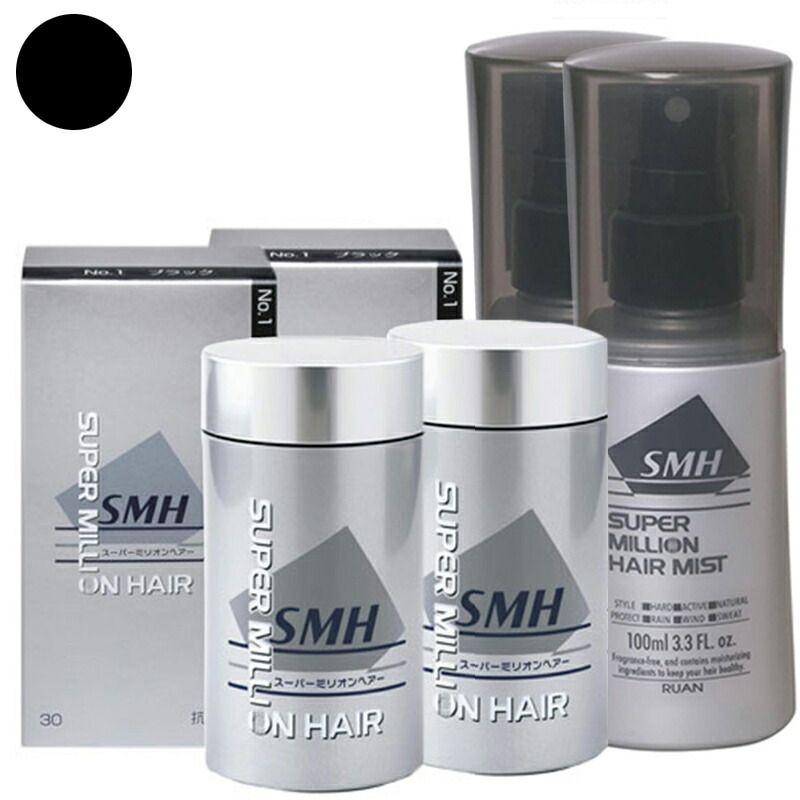 ルアン smh スーパーミリオンヘアー ブラック 30g ×2 スーパーミリオン ミスト ヘアミスト 100ml x2 セット 薄毛 パウダー 薄毛隠し 増毛パウダー ヘアパウダー 女性 男性