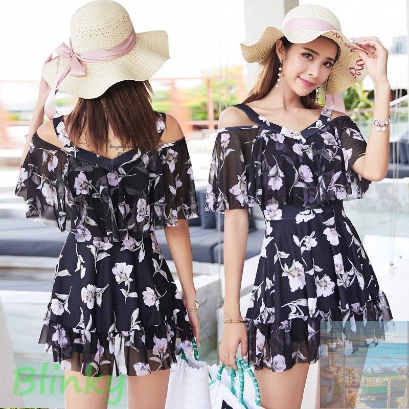 ♥ 水着 ワンピース レディース 体型カバー 大きいサイズ 水着 オールインワン 3L 4L 5L ママ 水着 オフショルダー フ 花柄