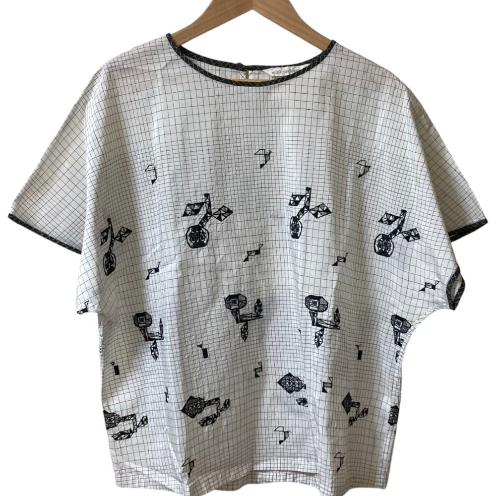 mina perhonen ミナペルホネン crystal flower グラフチェック ブラウス zs1134 サイズ40 ホワイト ブラック レディース 古着