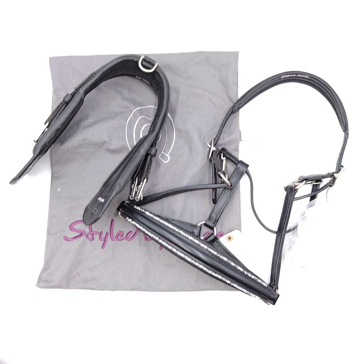 2点セット OS FINELINE PIPING ダブルブライドルコンフォート 革腹帯 55cm 乗馬 馬術