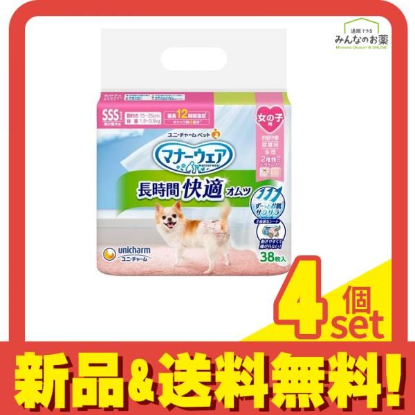マナーウェア 長時間快適オムツ 女の子用 SSS 超小型犬用 38枚入 4個セット まとめ売り