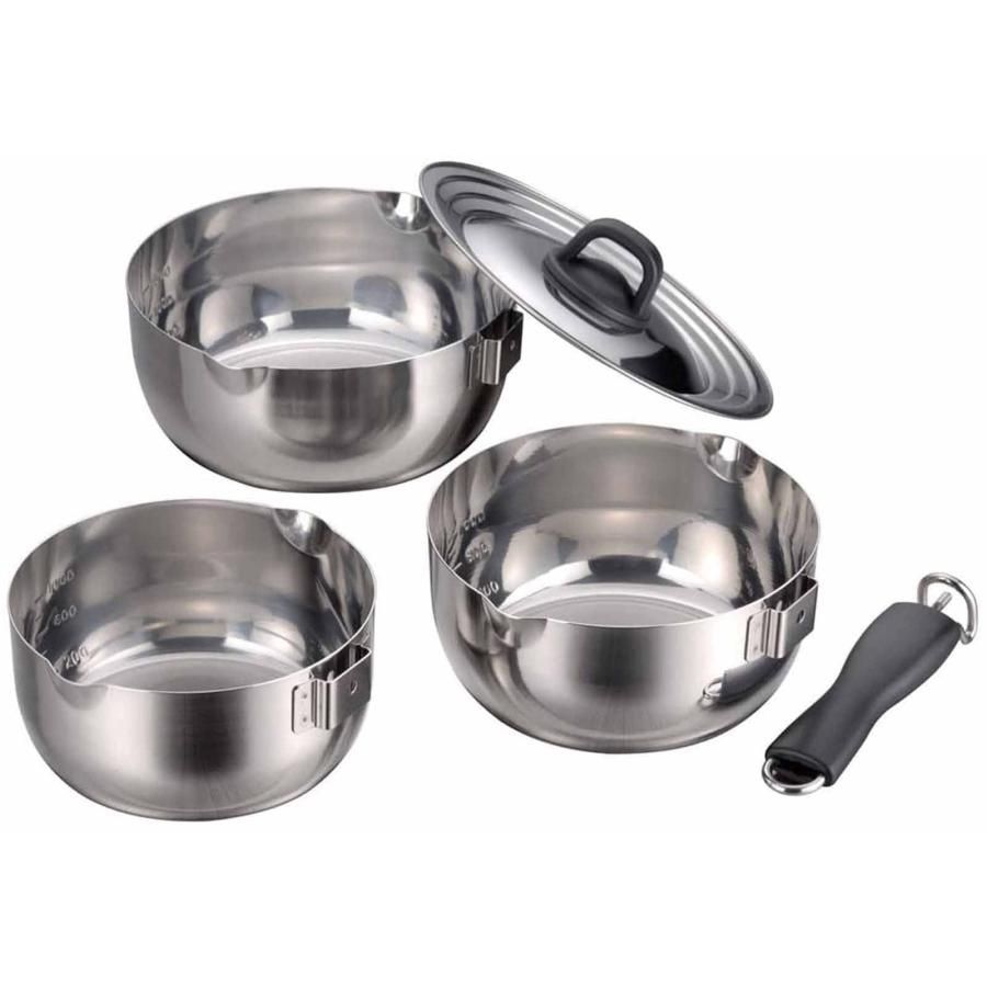 下村企販 取手の取れる 片手鍋 3点セット 16|18|20cm 日本製 直火 IH対応 ゆきひら鍋 着脱式ハンドル コンパクト収納 目盛り付き