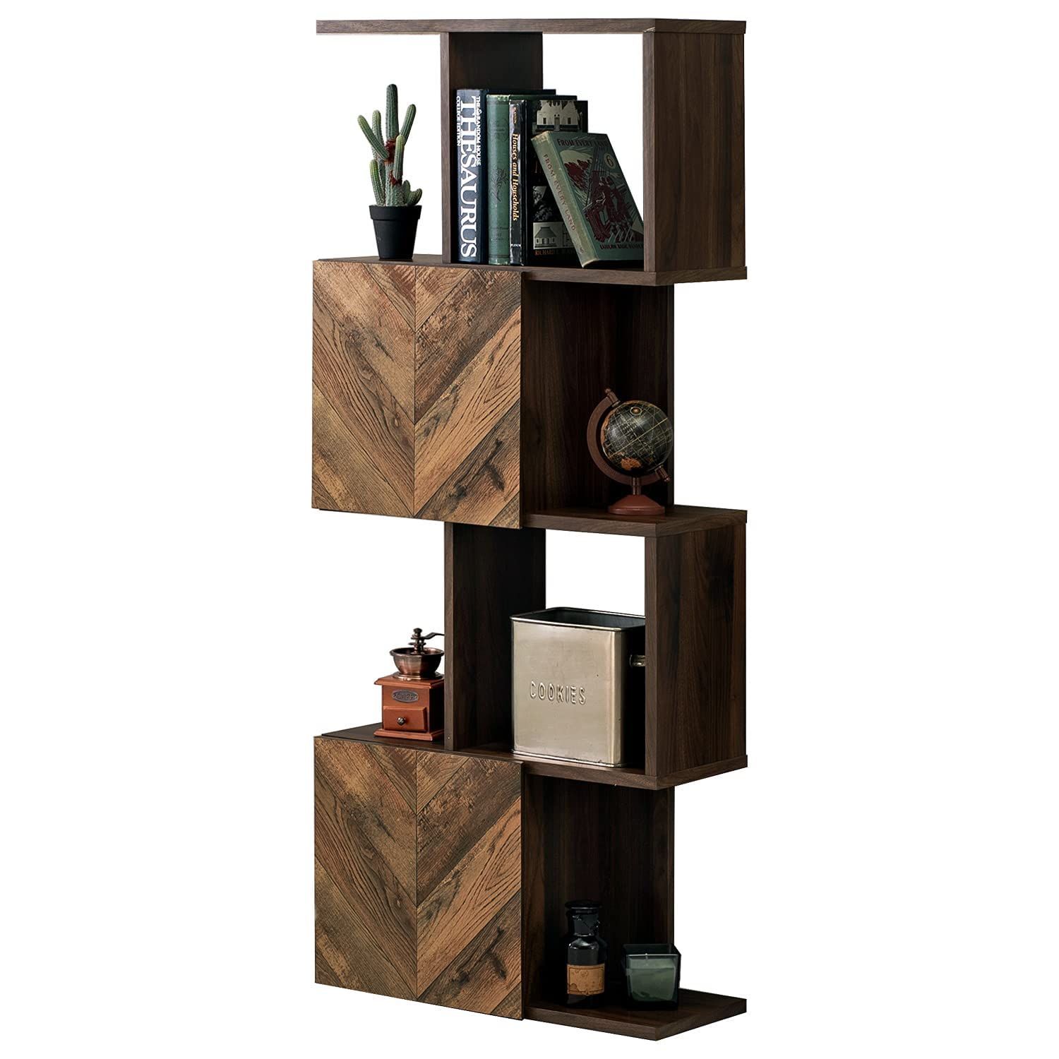 人気商品 付き 収納 木目調 インダストリアル 約 扉 幅59 奥行25.5 高さ142.5 本棚 cm 4段 本 書類 ディスプレイラック ラック 棚 book 萩原 Hagihara shelf RCC-1015BR 1台入り