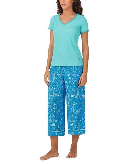 送料無料 クドルドッズ レディース ナイトウェア アンダーウェア Women s Printed Cropped Pajama Set Blue