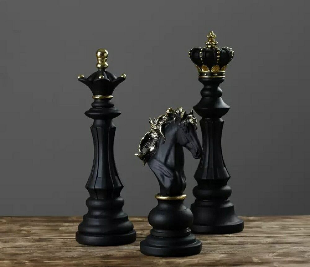 アンティーク調仕上げ微細な塗装ムラ等あり 置物 3個セット ナイト キング クィーン 選べる2色 アンティーク チェス 駒